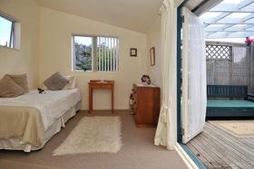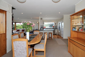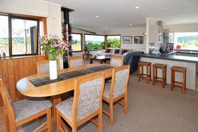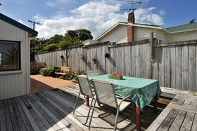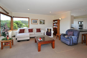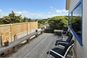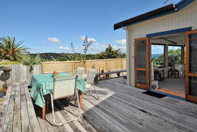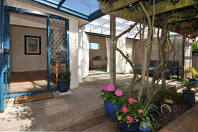Tired of commuting or traffic - Then this property offers a fantastic opportunity for those wanting to have a home office/clinic/studio on the same grounds as their home . The separate two level chalet is perfectly set up for this, with its own bathroom facilities, on a very accessible flat section with off-street parking, in central Oneroa. The 3 bedroom plus study home is set far enough back to provide privacy for both. The main house has a new designer kitchen, large lounge with twin sea views and fireplace, and a wonderful indoor/outdoor flow to sunny courtyards surrounding the house. Very few houses offer this versatility. (first 6 pictures listed are of chalet)